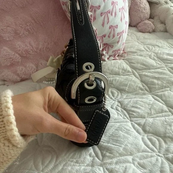 š¤Ā Y2K Coach Black Signature Mini Soho Flap Shoulder Bag/PurseĀ š¤